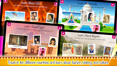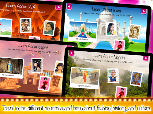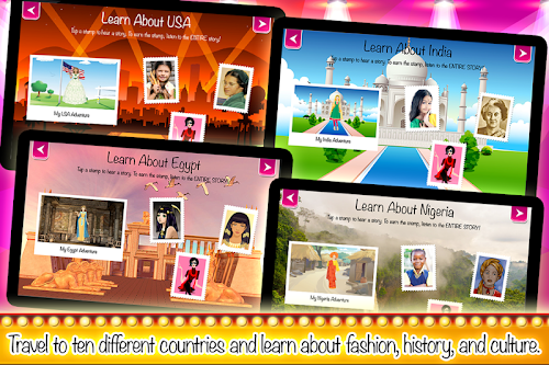 Missy International is designed for girls age 8 and above who love to play fun games, fashion and style. The carefully researched images from each of the ten countries/eras feature clothing, accessories and cultural objects that were individually hand drawn with the greatest detail. Additionally, this free educational app goes beyond the typical dress-up and fairy princess games to educate you about the culture, style and history of the country.