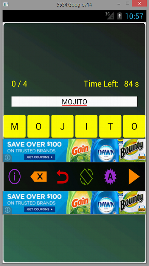 This is a super fun, highly addictive word game that tests your eye for drinks. The objective of this game is to solve a puzzle in which the words of a drink have been rearranged. You have to rearrange the letters in the right order and discover the drink. There are hints available to help you solve the puzzle. If you guess the drink correctly, you win ! You get REAL points (mPoints) that can be used for REAL rewards at retailers like Amazon, Walmart, Best Buy etc.