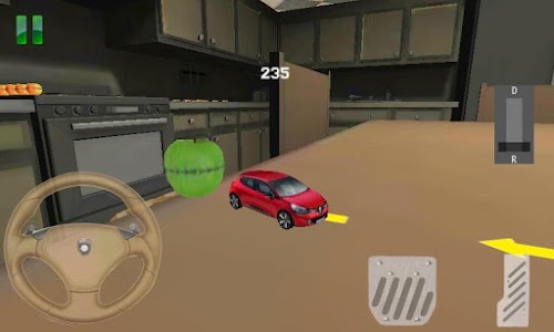 Control your car with an on-screen steering wheel, acceleration and brake pedals. Shift the gear to forward or backward as you need.