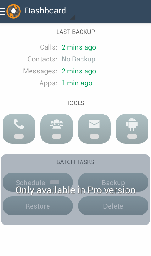 - Batch Backup, Restore and Delete (Only in Pro version)
