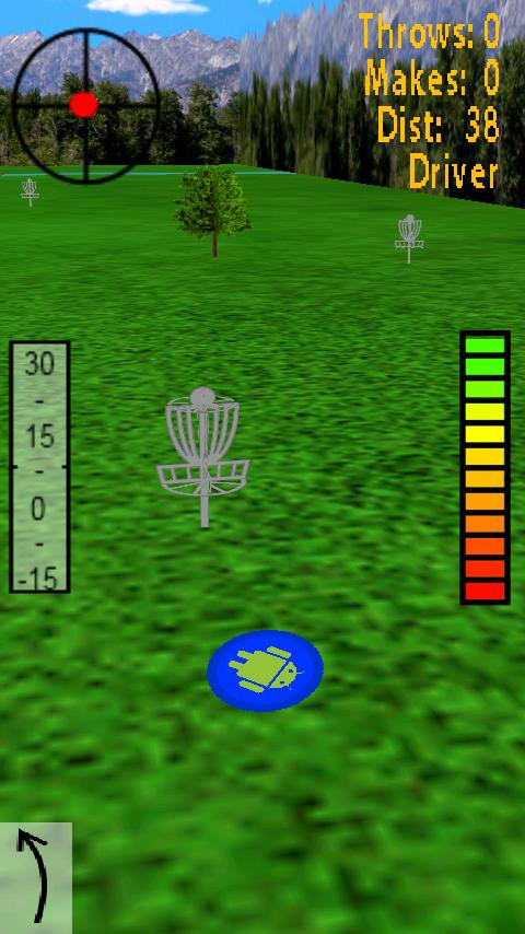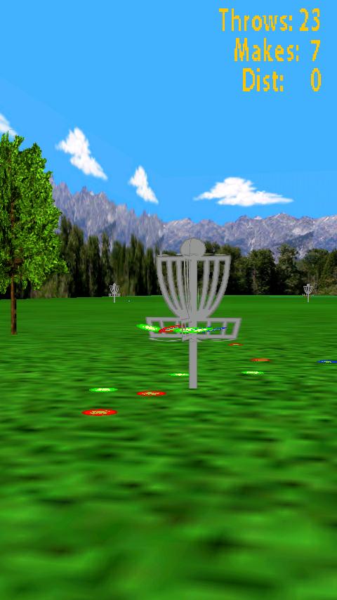 Options from the main menu allows you to choose what color your driver, approach, and putter are. Go out to the range to start throwing some discs. Look upwards (click and drag!) towards the treetops to get maximum distance. Here's the best part: you control the disc once it is in the air, just tilt your phone left, right, up, or down, and the disc will follow! But tilt effect is weak when you are a beginner, and gets stronger once you throw more discs. Career Info from the Options menu will show you these statistics.