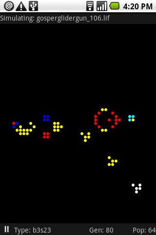 Simulate cellular life. This is an implementation of Conway's Game of Life. Choose from many included seeds, download thousands online, or design your own from the app.