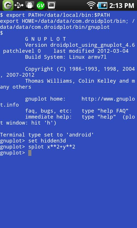 This app is no longer the plotting engine for Octave. Get the Octave Gnuplot Package instead (com.octave.gnuplot).