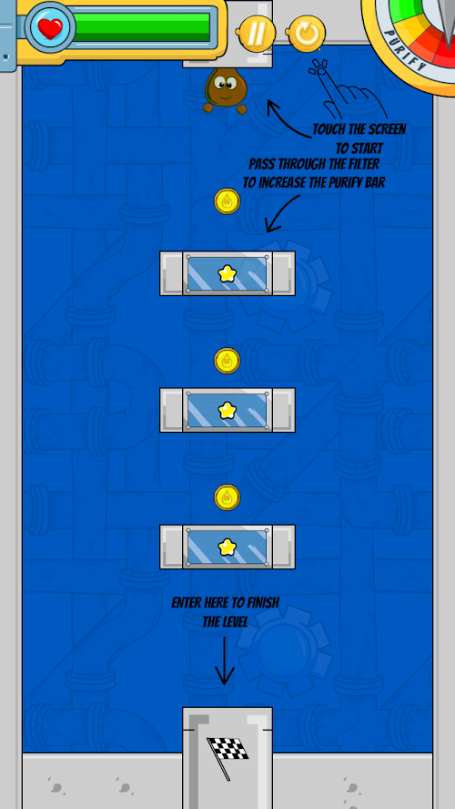 Along the pipes you will find various types of filters to purify the small Droppy! Try using the filters UV or Carbon!