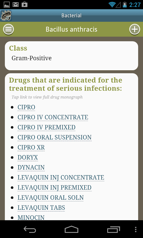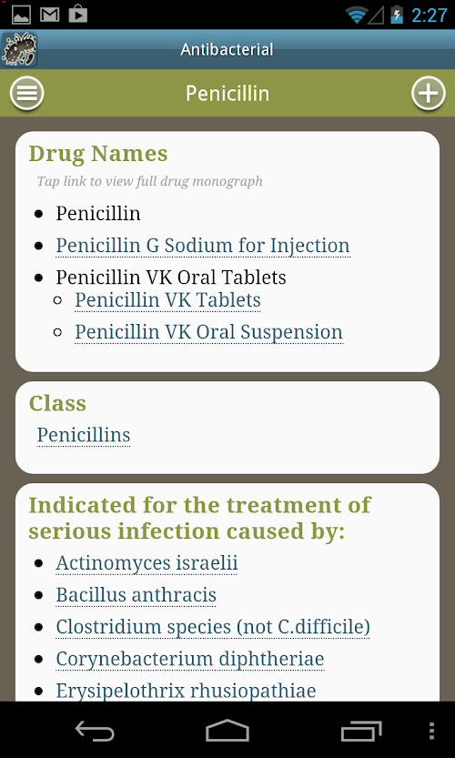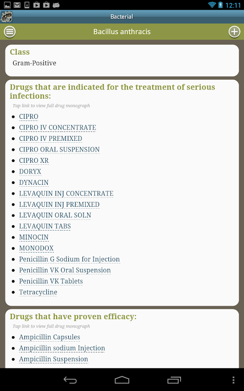This version of Drugs & Bugs Android App comes with one universal variant which will work on all the Android devices.