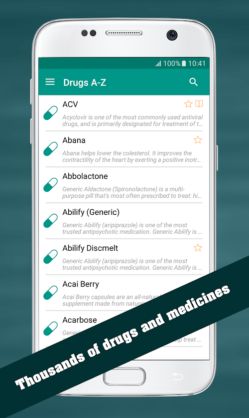 Drug Dictionary is a medical hand book that provides all information about drugs used for medication: uses, dosage, how to take, side effects, precautions, drug interactions, missed dose and storage.
