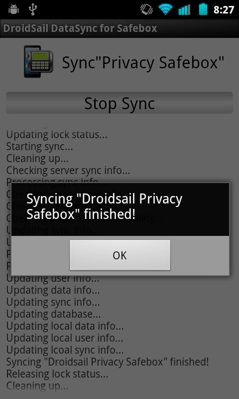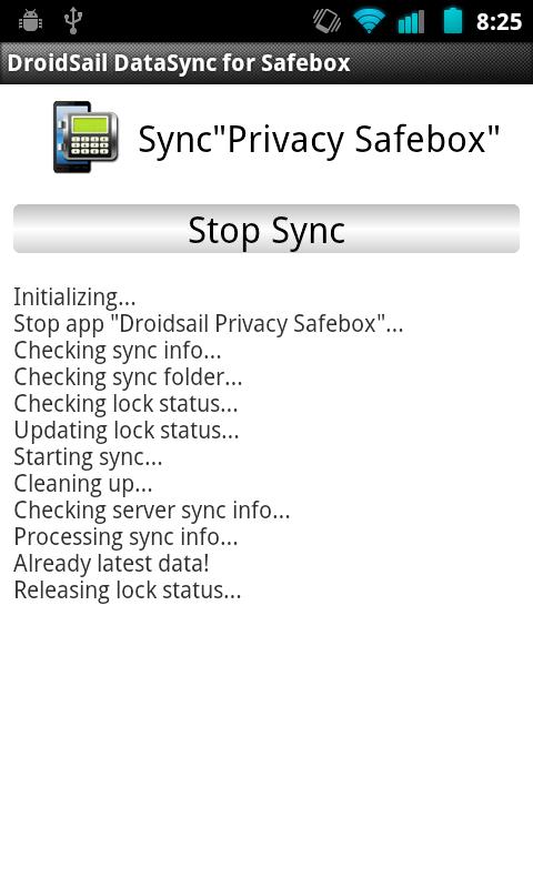 (Since sync function requires more permission, so we implement it as single app, if user does not want to sync data, his/she can use only "Droidsail Privacy Safebox" for "clean"(no internet access) and slim, in KB size.)