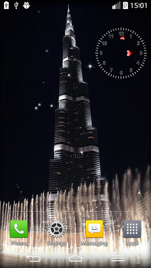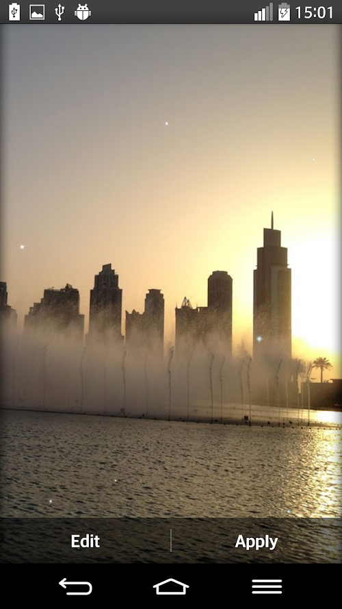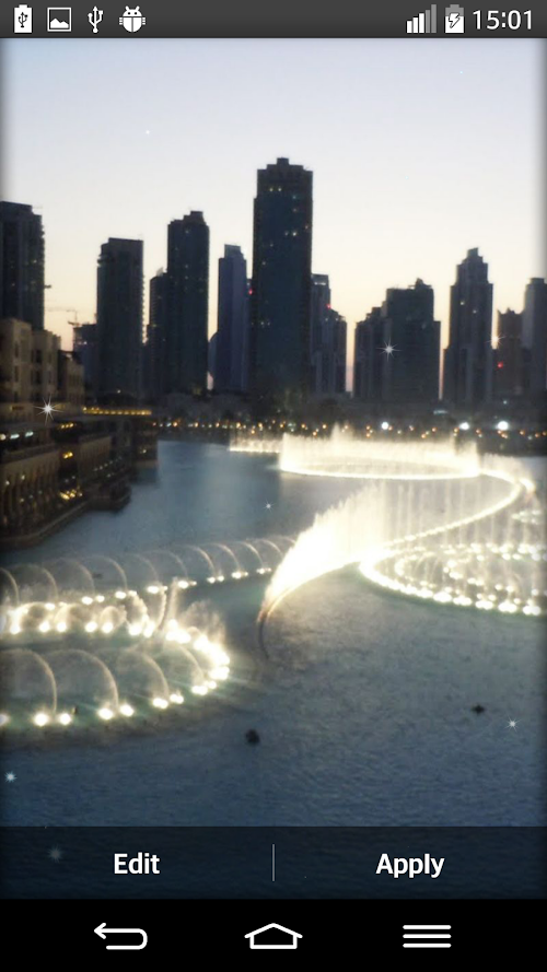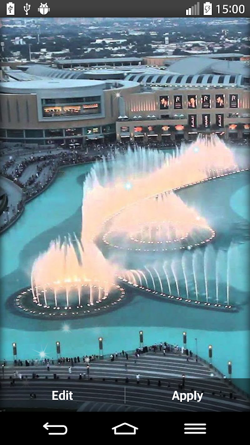 Would you like to see the largest musical fountain in the world? The time is now! Get the free download of ''Dubai Fountain Live Wallpaper'' and experience the true beauty of this stunning architectural piece! Freshen up with crystal clear water drops splashing your screen! Feel enchanted by the spectacular scenery of water going high up in the air! ''Dubai fountain'' has been decorating the wonderful city of Dubai for many years! And now it can decorate your own phone! Take this unique opportunity and find out why so many people go to Dubai just to see this magical waterfall!