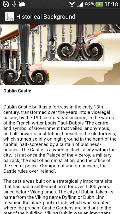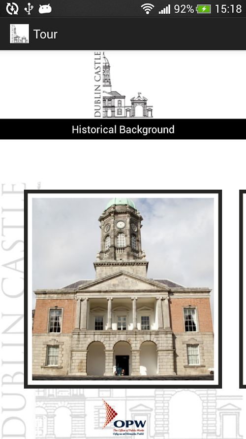 This Mobile Tour App, in English and Irish will guide you through Dublin Castle and provides detailed historical descriptions together with an audio tour and images.