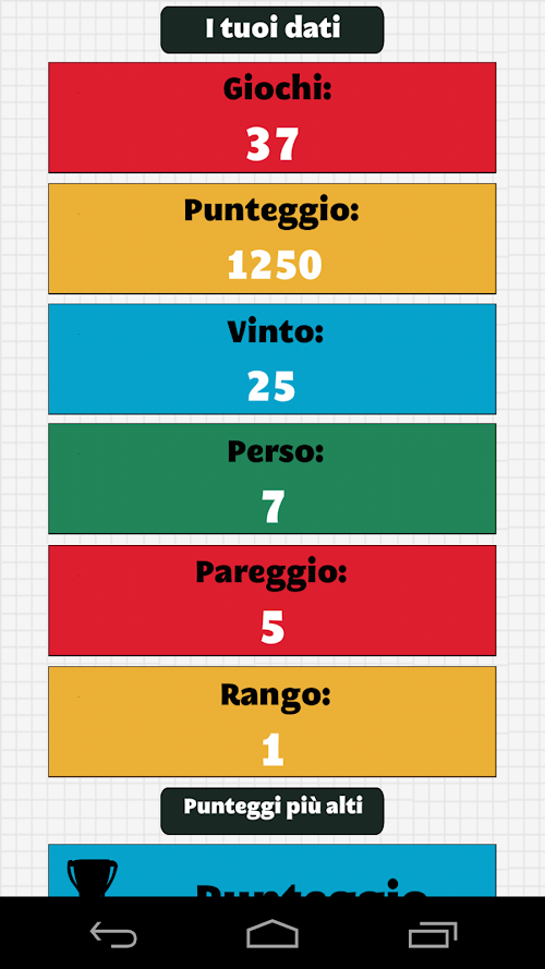 Nelle statistiche riassuntive, tu puoi vedere tutti i fatti relativi dei tuoi giochi finiti e puoi comparare i tuoi resultati direttamente con i tuoi amici.