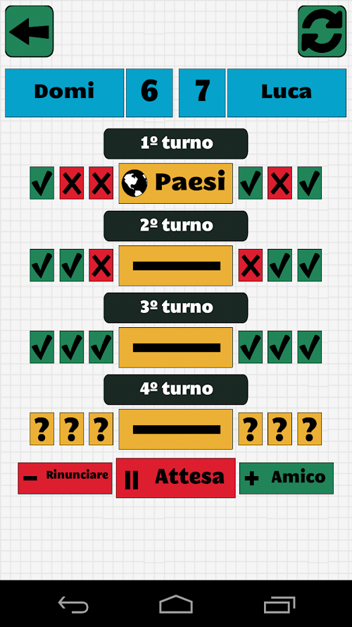 Le categorie vengono selezionati alternativamente, in modo da avere la possibilità di selezionare una categoria nella che tu sei particularmente bravo piuttosto che il tuo avversario.