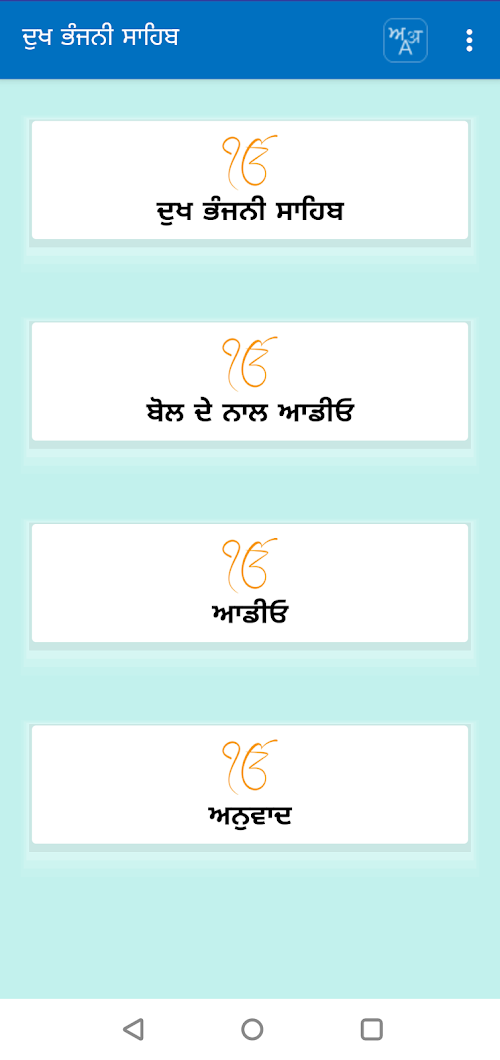 Features of the app Dukh bhanjani Sahib in Gurmukhi, Dukh bhanjani Sahib in Hindi, Audio playback of Dukh bhanjani Sahib with lyrics (Gurmukhi,English, and Hindi)