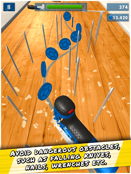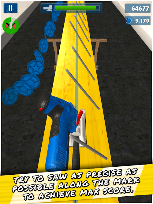 Play the toughest game challenge in the app store. Show that you’re a professional with a jigsaw and don’t give dust a chance. Evade hazardous obstacles, like falling knives, nails, screw wrenches or measuring tapes, and saw your way to a high score.