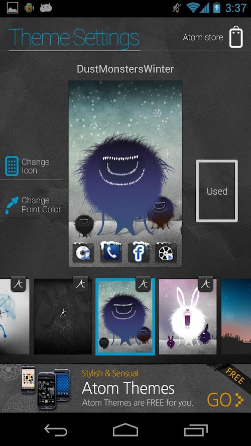 - Wide-Range Theme Support: Wide-range theme support by Atom Launcher and also existing SSKIN and GO Launcher themes