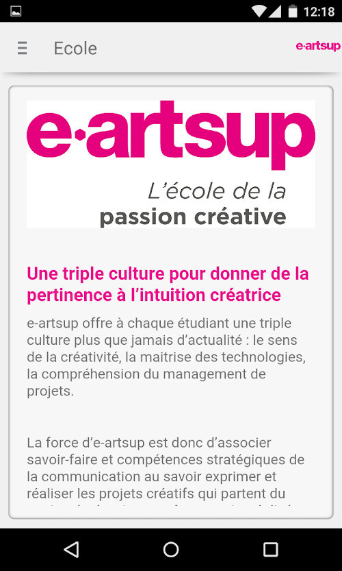 - Aux informations de contacts.e-artsup is the college of digital creation. It trains future artistic directors in four major areas: game design, interactive design, design & communication design and motion.