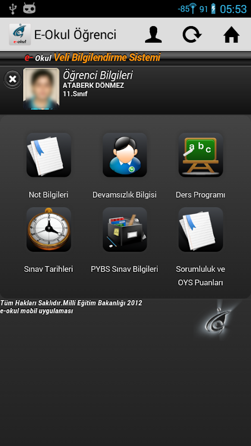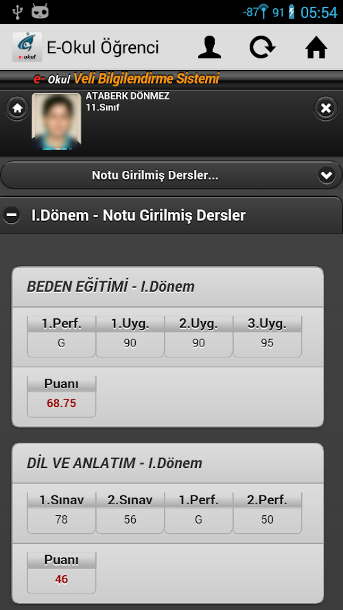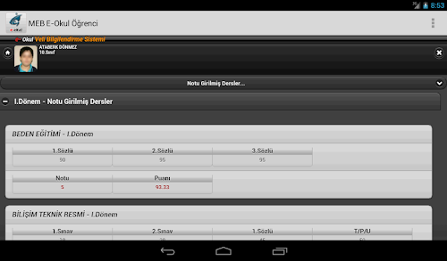• This application note for students of parents of students, allowing progress reports and attendance can check the status of the mobile environment. E-School Parent Information System for Students with exam notes, project notes and performance, absenteeism, central examination results, followed by behavioral notes edebilirler.uygul through primary, secondary and high school students can see their grades.