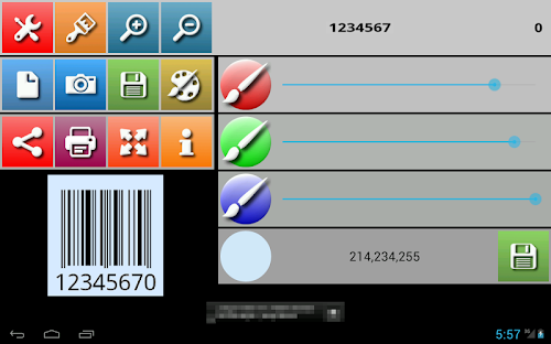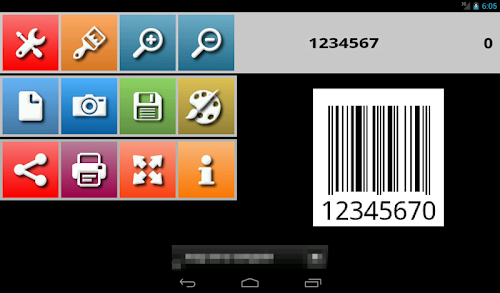 Create and Print Ean8 barcode labels in seconds. Also it allows yourself to verify if the control digit of the Ean8 is correct. Introduce 7 digits and press the Paint button. The application will take charge generating the control digit and drawing the barcode. The label can be saved in the SD card pressing the button Save.
