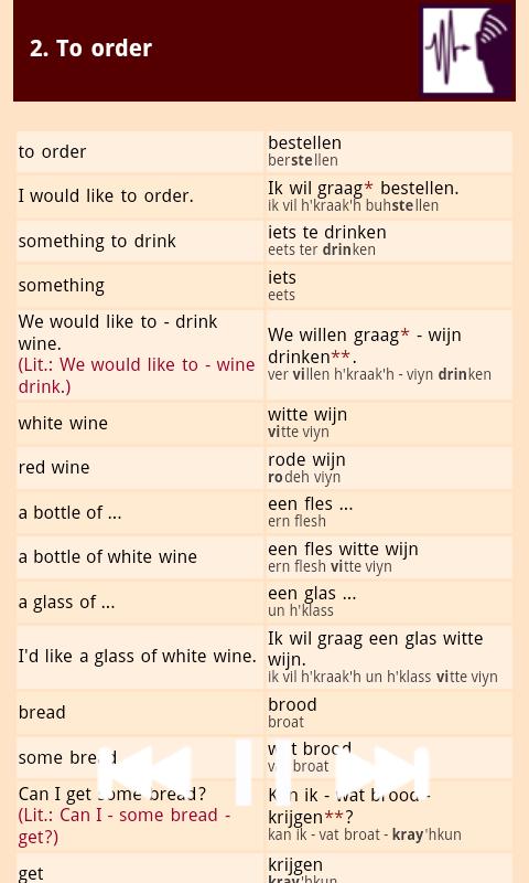 The accompanying booklet contains all the text on the App, both English and target language, plus the sounds of the words. An additional aid to learning 'memory hooks' and comments to assist your memorisation and understanding can be found on the website under 'Extras'. These complement the App and are really worth checking out. Memory hooks are for example, if you want to memorise the Italian term 'my name is' = 'mi chiamo', imagine 'my name is Micky Armo' - and you will never forget.