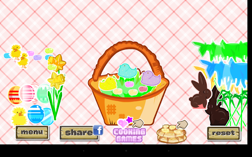 Easter Basket Dress Up is the best Easter Game! It's cute, simple and fun..you just decorate Easter Baskets! Start with a wicker basket, and add colored Easter Grass, a collection of Painted Easter Eggs, marshmallow chicks, cute baby chicks, chocolate rabbits, jellybeans and more! After you've created and designed an amazing Easter Basket, you can share it with friends because the game will save a snapshot photo for you! text or share the image of your custom basket with everyone! When you want to celebrate the great colors and items of Easter, this is the perfect fun game!