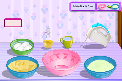 In this game before you begin with cooking, collect all required ingredients. Then bake a Bundt Cake. Prepare frostings of 7 different colors and decorate the cake with frosting and Easter bunny basket. Enjoy!!