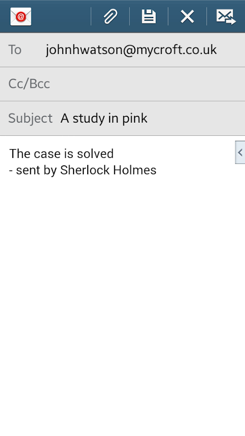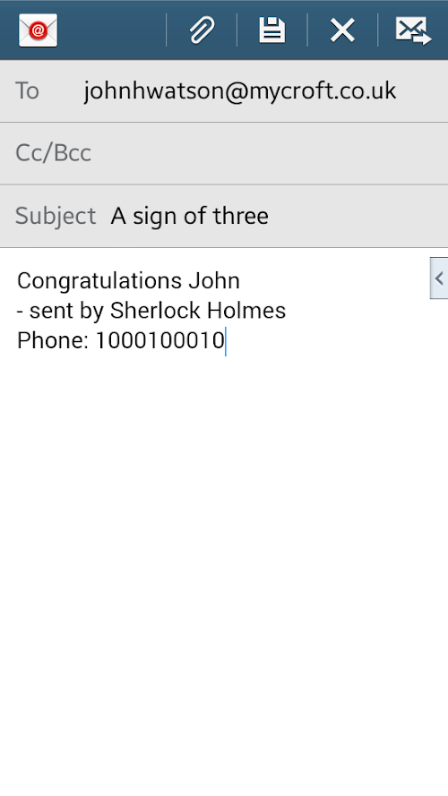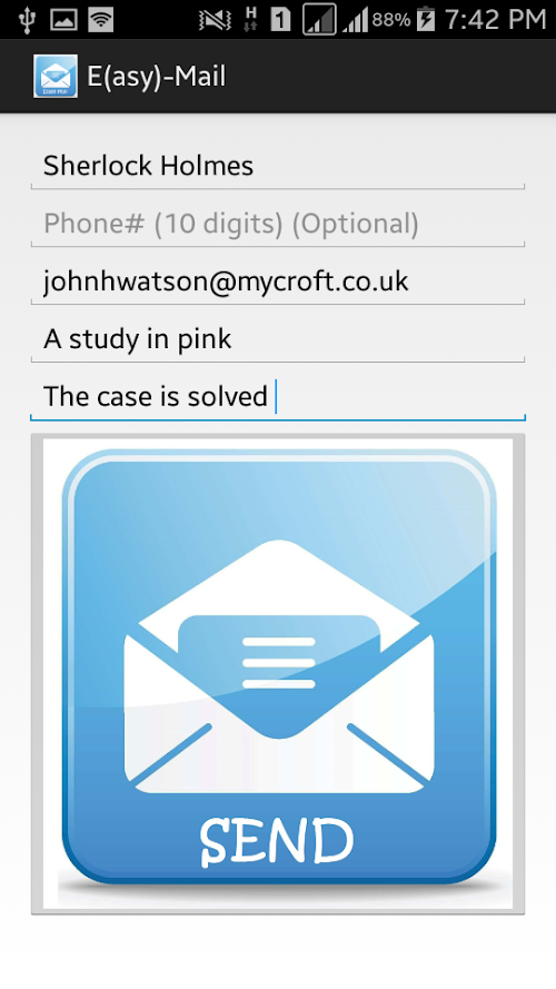 This is a simple App for composing an E-mail message. User can simply fill up the form to compose new plain-text message for business or personal purpose. This composed message will be send by User's personal E-mail account, the one which might active in the device.