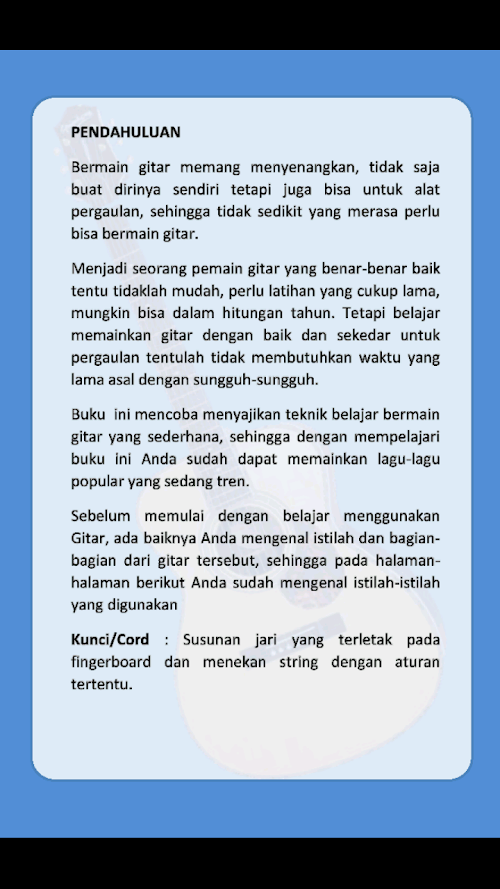 This book attempts to present techniques are simple to learn to play guitar, so that by studying this book, you can already play popular songs trending.
