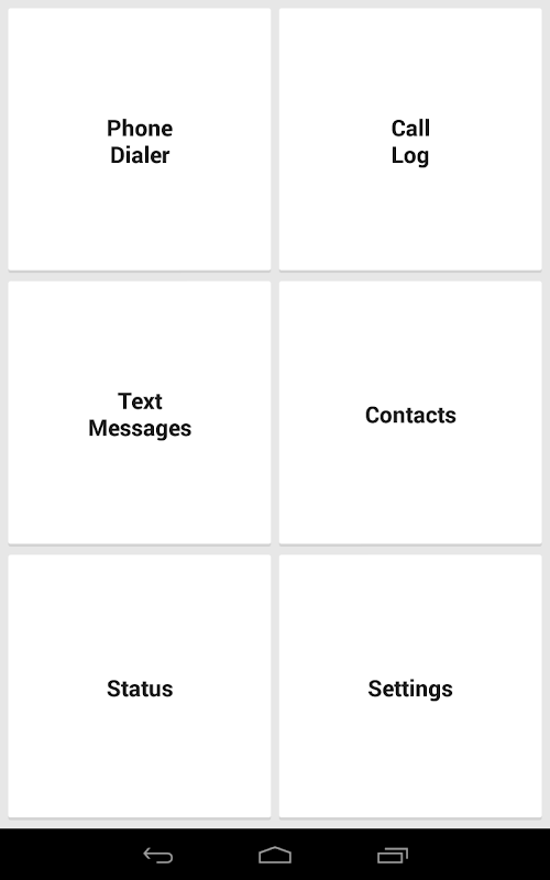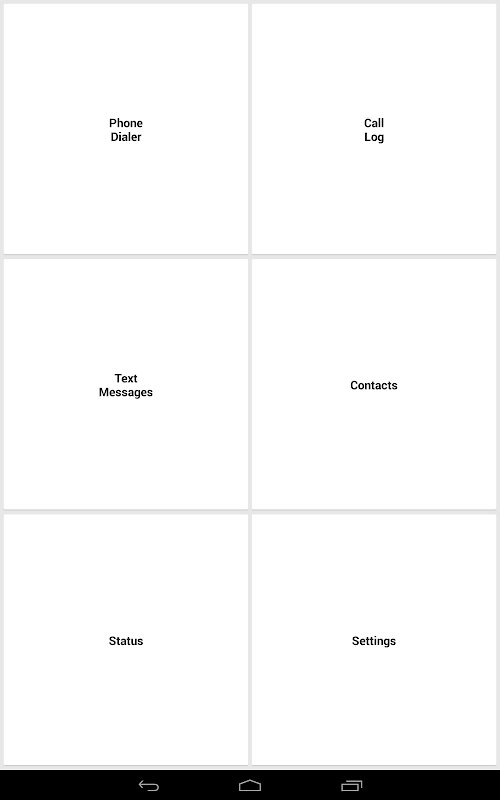 For the above listed 18 applications and menus, we used all the native Android API calls available and provided as part of Android SDK to create an entirely brand new simplified and fully accessible interface for the smart phone for these tailored applications.