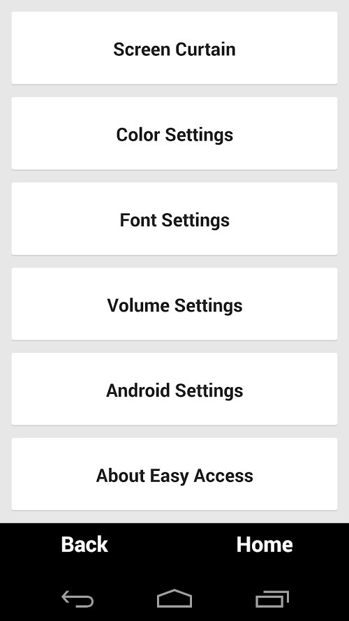 Where a best-in-class accessible app existed from a 3rd party, we incorporated these into the launcher. Easy Access can also be set as the default Launcher application so that the entry point or interface for all these applications is readily available to the end user.