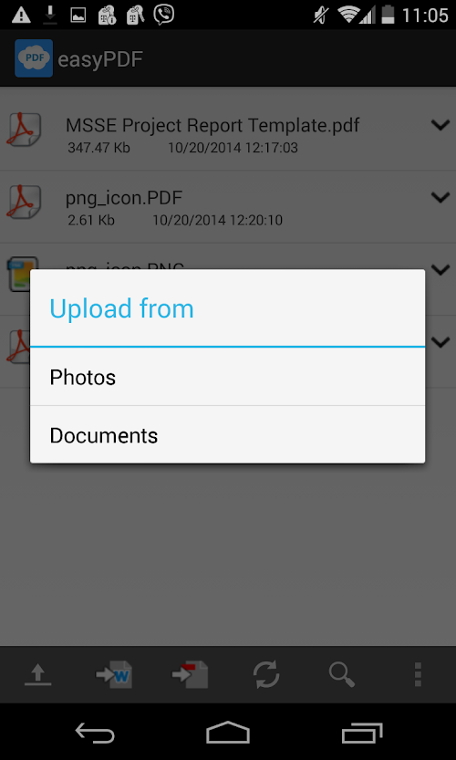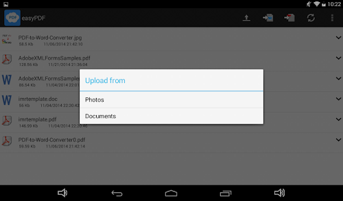 - The files can be imported either by directly clicking on "Upload" button from within the app or from other apps by opening the file using easyPDF.