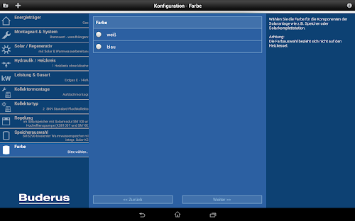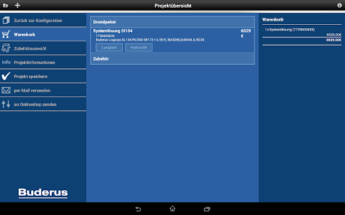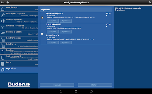 EasySelect is an app for quick and easy selection of the required components of a selected heating system. The heating engineer can order the configured systems and system components directly from the Buderus Online Shop Locally. The dissemination of the Product List in an artisan software is immediately available with Easy Select. By answering a few questions can be automatically matching components View / configure and view their system hydraulics. Also accessories such as additional heating circuits or exhaust components are automatically selected for the heating system are displayed for selection. Basis for the app is the Buderus catalog "systems and packages."