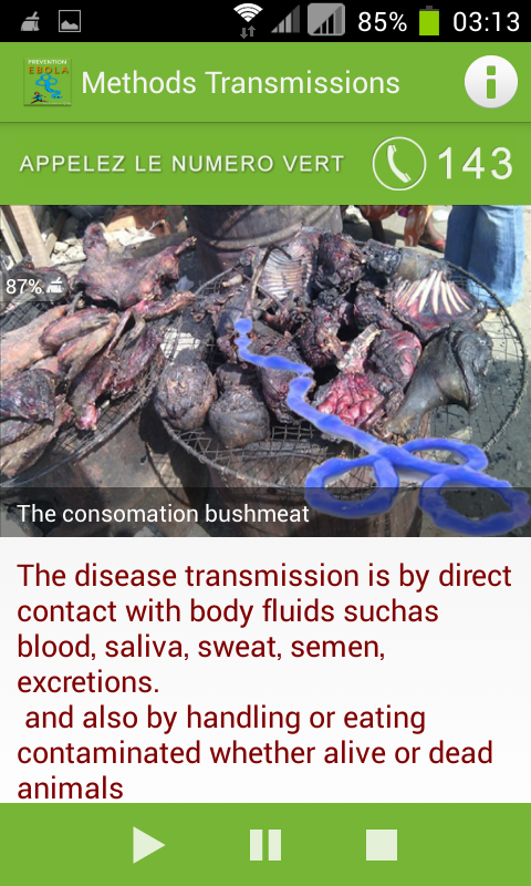 Notice to all men and women who wanted to contribute to the enrichment of the application by putting audio recordings in their different languages at our disposal. Feel free to contact me at the following address: [email protected] or https://www.facebook.com/preventionebola
