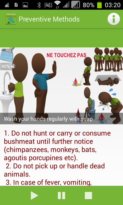 Ebola prevention is an awareness raising application against Ebola in African local languages (Vocal).