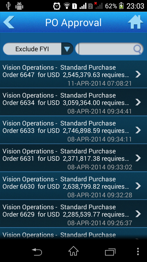 - It facilitates the Decision Makers, Managers and Executives to View, Approve, Reject, Forward and Request additional Information on pending notifications from Android device.