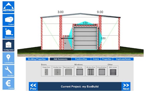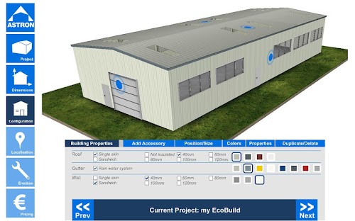 This Building Configurator is an innovative tool for architects, planners or anyone else in the buildings industry, even for potential building owners, to easily create an individual steel building. On that basis you will get a realistic price for your industrial building (not for private houses).