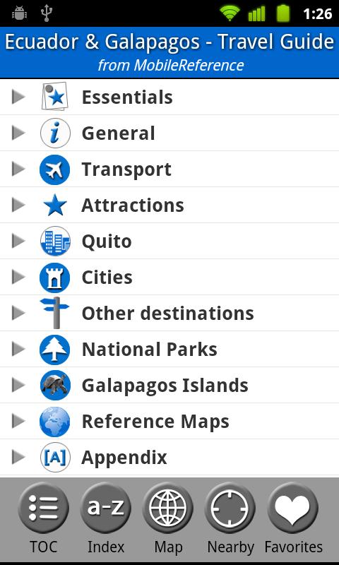 MobileReference Travel Guides provide detailed, practical information about attractions, landmarks, transportation, cultural venues, dining, lodging, history and much more. They are indexed alphabetically and by category, making it easier to access individual articles. Attractions can be viewed on an offline GPS map along with your current location so that you can easily find attractions near you as you explore the city.