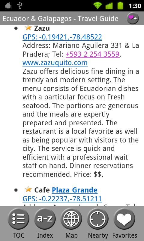 ✔ The top restaurants have been individually selected by MobileReference editors. These restaurants are marked by a star in the EAT chapter and are plotted on the GPS map.