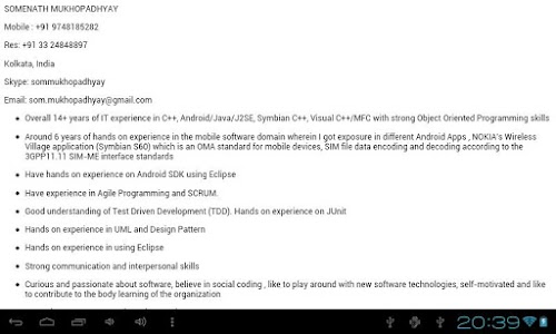 This is an app for reading documents of different formats on an Android device. The app supports .ODF, .ODT,.PDF, .DOC, .XML, .HTML, .RTF, .EPUB, .TXT formats. It also supports .ods, .xls and .odp files though in a bit coarse way. At the start, the App will show the files on the SD card. The user will then select a file and long press it to view the contents. This app does not support documents with embedded images.