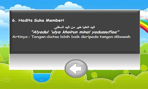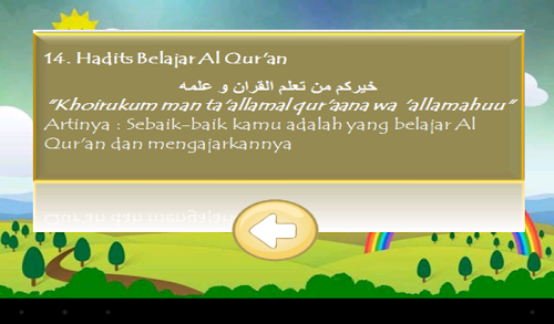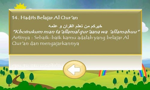 Aplikasi ini dibuat untuk memperkenalkan dan mengajarkan juga menghafal hadits Rasulullah SAW. Haditsnya shahih, mudah, jelas, agar putra-putri kita senang ketika menghafalnya.