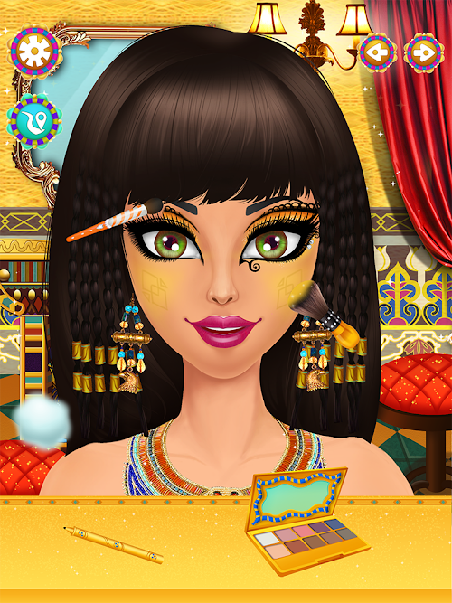 In the Mask DIY room, you can do the mask as the recipe,DIY time always take fun to girls. Come to Facial salon room,give the Egypt princess a nice and soft mask, her skin will be change more nice. In the makeup salon room, you can make up the princess with Egypt style.Then don't forgot to dress up her with Egypt dresses.Each room and item will give you different feelings and features.To be the best beautiful Egypt Princess with the salon game!