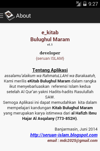 We release eKitab Bulughul Maram in the effort to disseminate references to Islam after the Qur'an both the hadiths of the Prophet Muhammad.