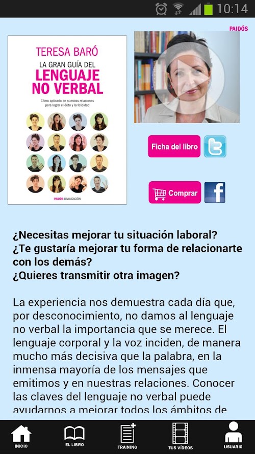 ATENCIÓN: no optimizado para tablets. Now with the non-verbal language application, based on the book of Teresa Baro, you'll be able to practice the art of nonverbal communication and improve all aspects of your life.