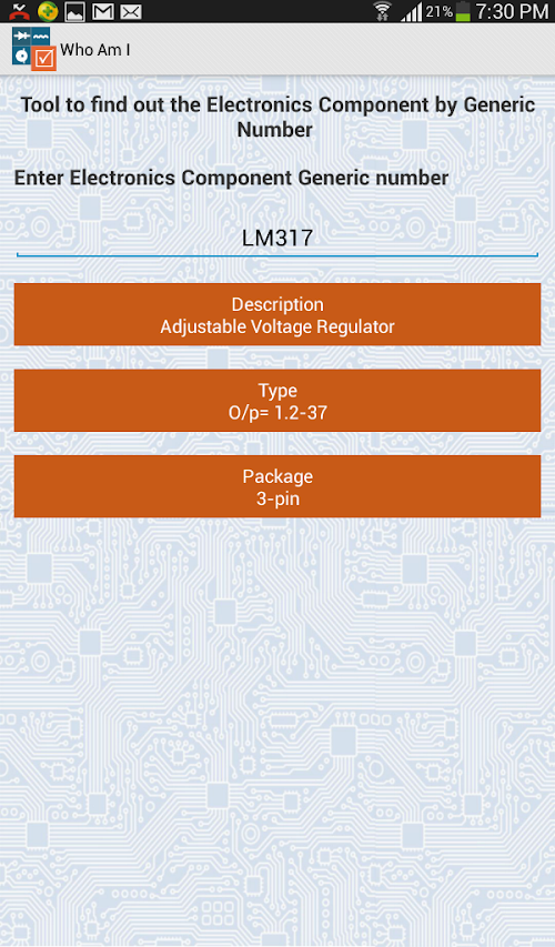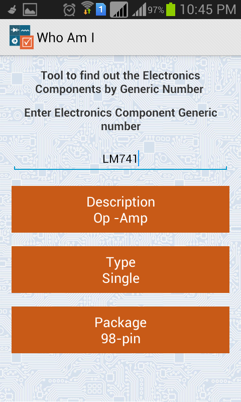 The goal of this app is to provide you with an easy and smart way to learn all you want about electronics engineering via reference tables, pinouts and formulae. Whether you are a student, hobbyist, or just curious about electronics, this app will provide you with the all information you need helping you to achieve your objectives.