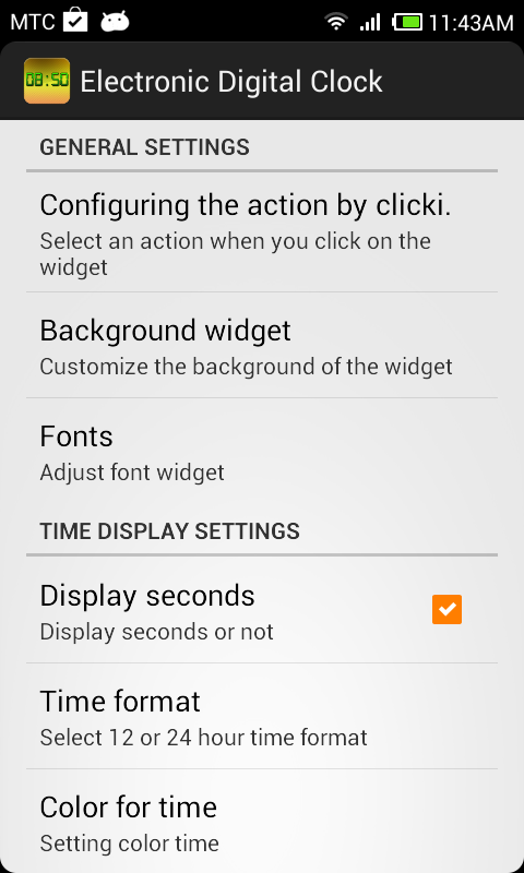 - Set an action when you click on the widget (set alarm clock, launch settings ..)