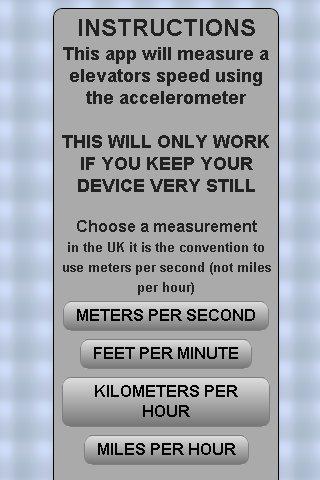 This will measure the speed and distance of an elevator using your devices accelerometer