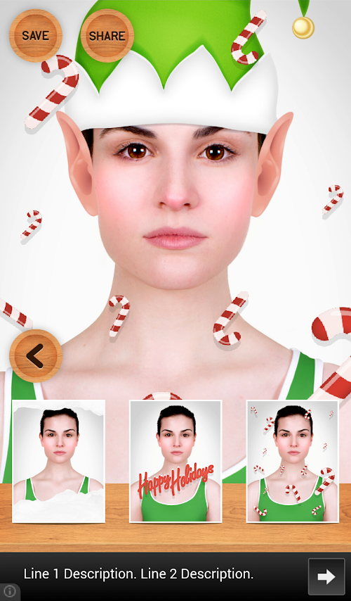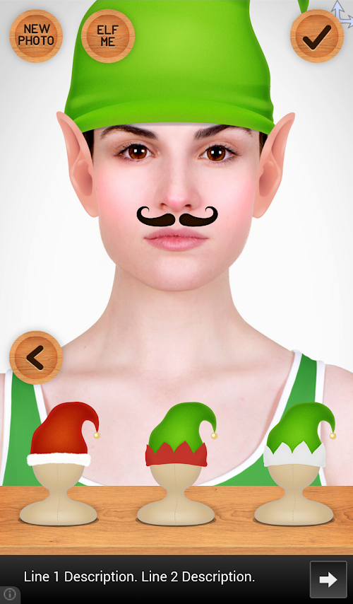 Elf Makeover is a fun and family friendly application that allows you to turn yourself and your friends into ELVES! Simply snap a photo or upload one from your library or Facebook and instantly transform yourself into an Elf! Choose from a variety of different features including Elf Ears, Elf Hats, Facial Hair, Holiday Stickers and Filters!