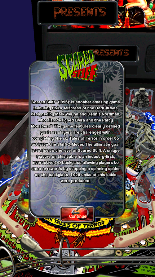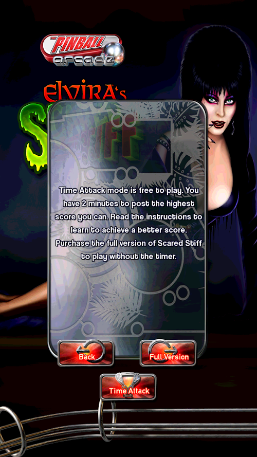 Scared Stiff™ is a stunning recreation of the 1996 pinball table of the same name. All the sights and sounds of the original machine are painstakingly recreated here. It features the beguiling Elvira, Mistress of the Dark™ in a free to play, time attack style game, based on the full version of Pinball Arcade's Scared Stiff™ pinball table.