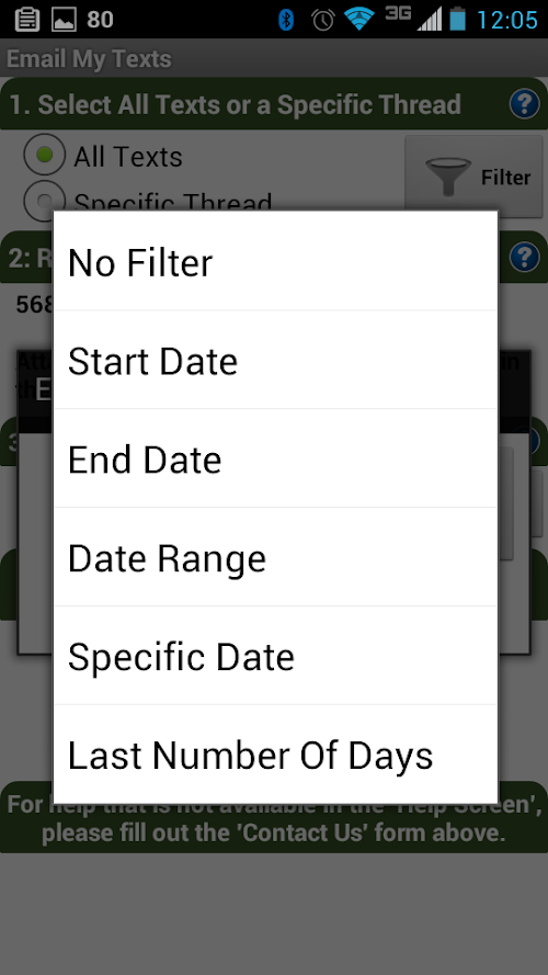 ► Filter your texts by Thread, Date, Date Range and Last Number Of Days