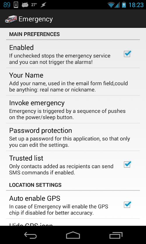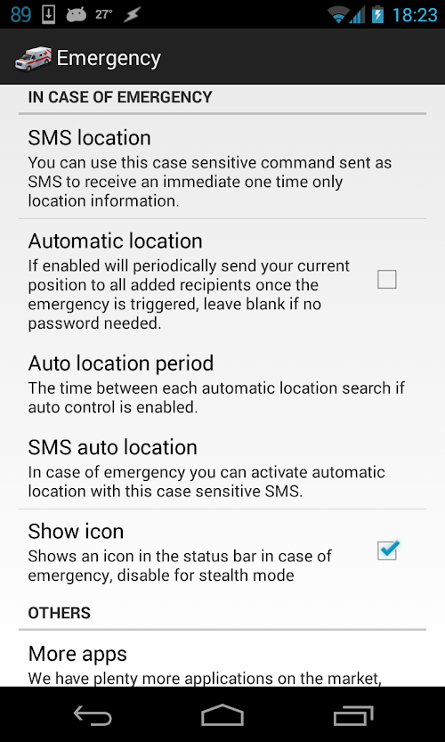 ✔ Stealth mode - Choose to have a notification icon in a case of emergency or disable it and run the emergency in stealth mode, so that potential abusers would not suspect anything.
