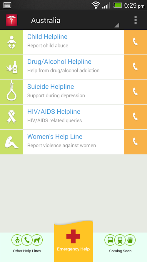 - One-touch calling support to the emergency numbers(Police,Ambulance & Fire) of the country .