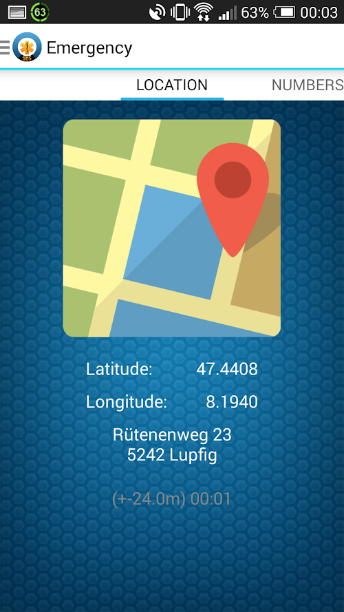 - Location based emergency numbers: Always automatically the correct emergency number (police, ambulance and firefighters) in any country, no need of internet connection